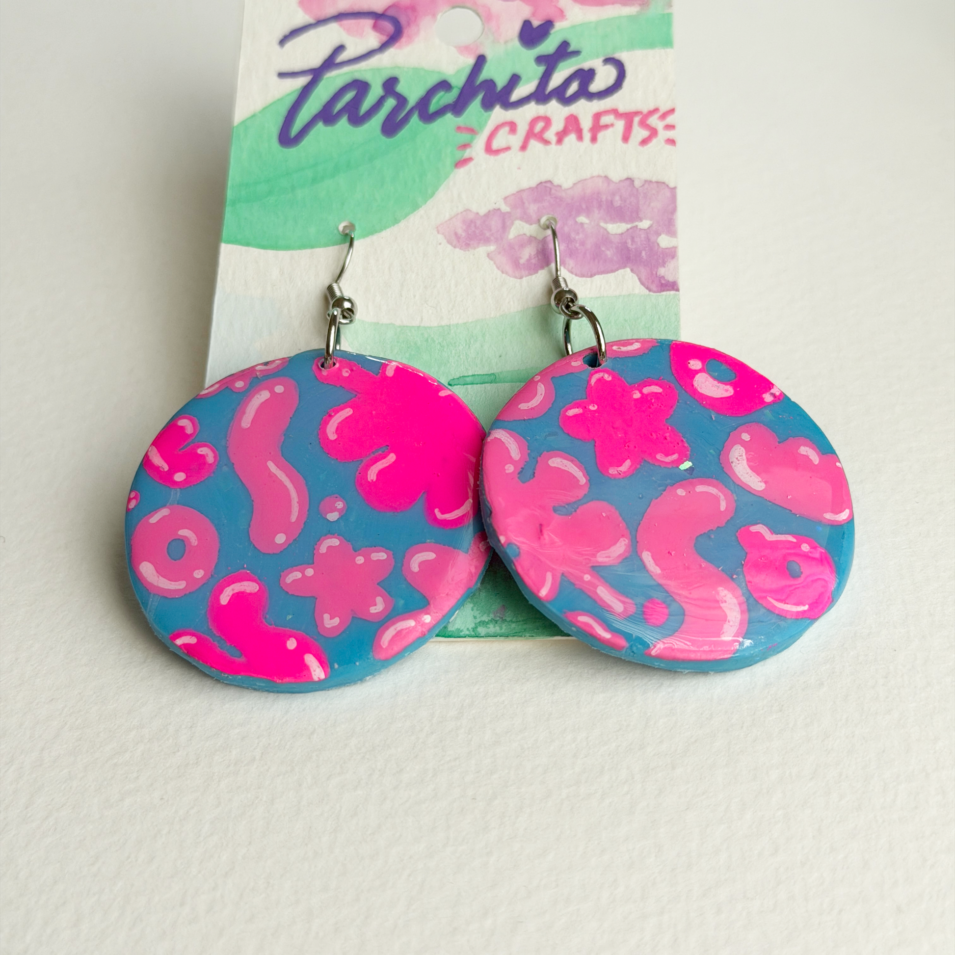 handmade clay earrings with a resin coat to keep them warm
