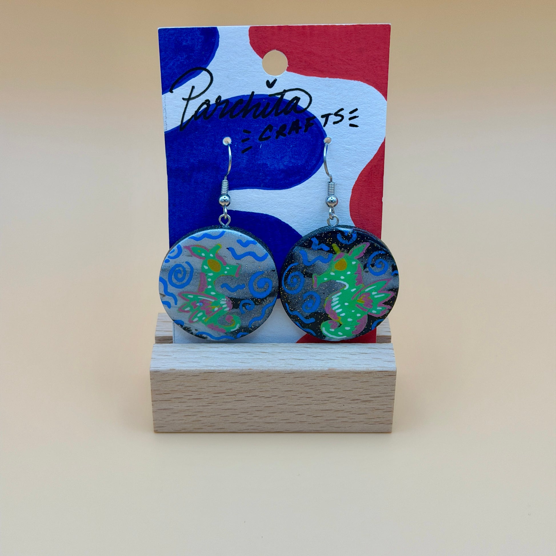 handmade clay earrings, painted and glossed!